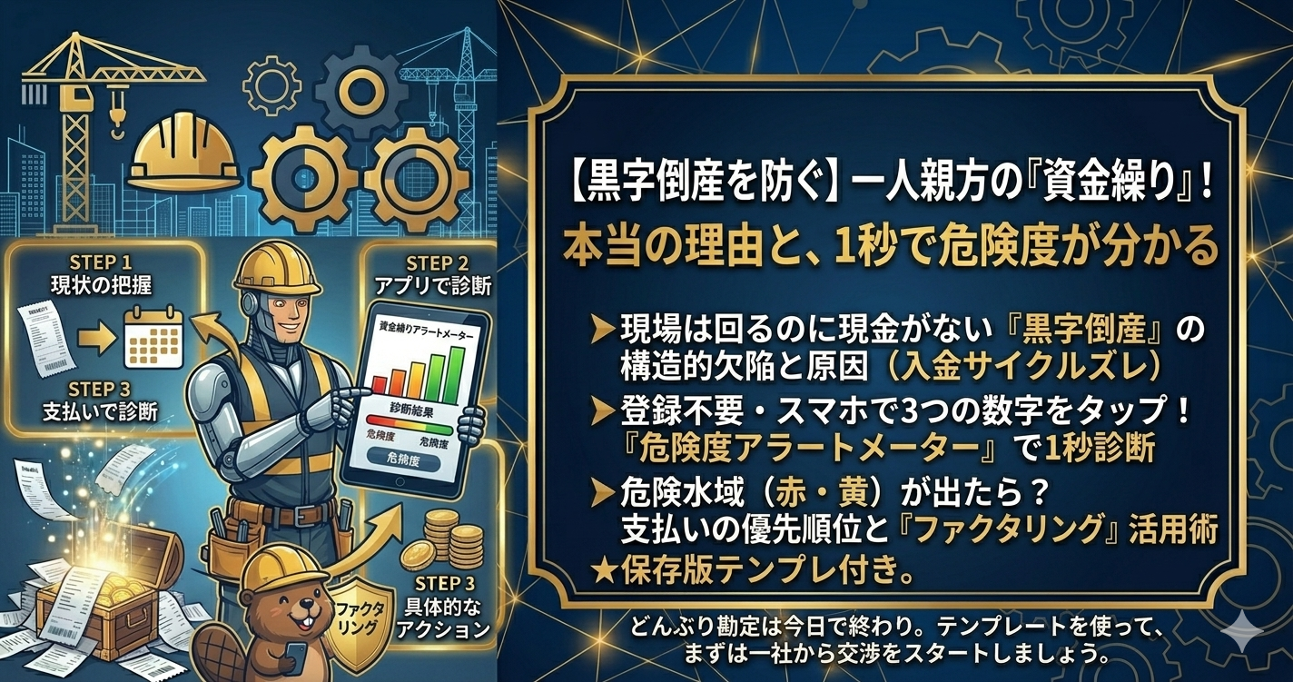 【黒字倒産を防ぐ】一人親方の資金繰りが苦しい本当の理由と、
